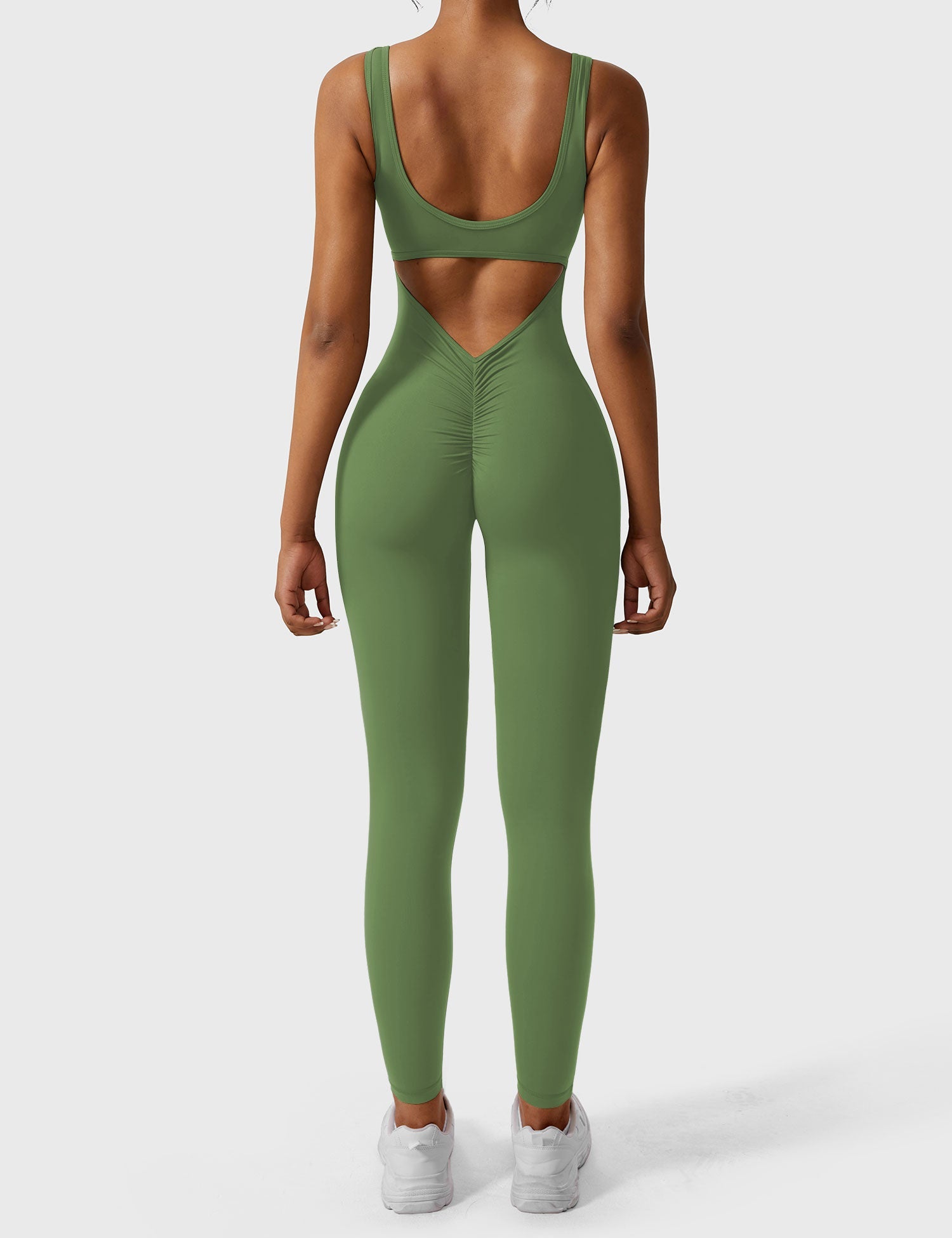 Our Lizvette V-Back Jumpsuit combines style and comfort. Crafted from soft, stretchy double-sided fleece, it ensures all-day comfort. The deep V-back and lifting ruffles enhance your curves, creating a flattering silhouette. Perfect for workouts or casual outings, this jumpsuit is ready to turn heads wherever you go!